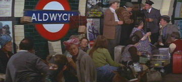 | During scenes of the London Blitz, "Aldwych" Piccadilly Line station - both externally and internally - re-enacts its own "Finest Hour." See The Underground at War for furthur details. | |||||||