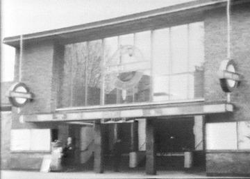 Doctor Who: The Chase [22/05-26/06/65 BBC1 TV]After the Doctor (William Hartnell) successfully evades the Daleks in a pursuit through Time and Space, his travelling companions Ian (William Russell) and Barbara (Jacqueline Hill) take the opportunity to comandeer the genocidal pepperpots' Time/Space machine to return to Earth. They materialise in a lock-up garage, and Ian tentatively looks outside to make sure of their surroundings. The first familiar sight he sees in "White City" station, in reality - and appropriately - just over the road from BBC TV Centre*! *See Doctor Who: The Dalek Invasion of Earth [21/11-26/12/64 BBC1 version] for map. |