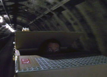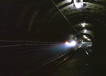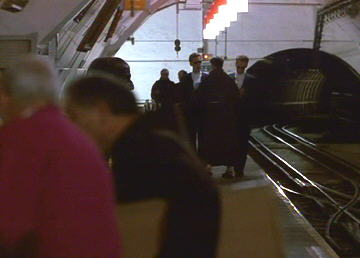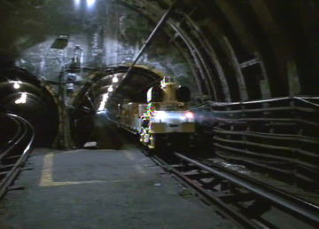 Hudson Hawk [1991 feature film]In the otherwise pointless heist "comedy," while casing the Vatican (!), the cat burglar of the title (Bruce Willis) is shown a, "postal subway" (!!) by Papal historian, Andie MacDowell (!!!). In actual fact, the location is the London system formerly operated by the Royal Mail, although in use at the time. More details of this unusual self-contained Tube railway can be seen at Colin Karslake's excellent Unofficial Mail Rail site. |