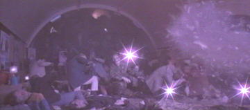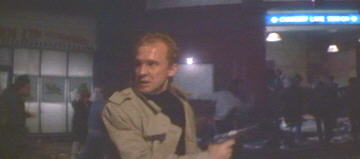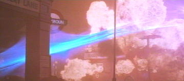 Lifeforce [1985 feature film]Ancient alien forces are taking possession of London, turning some of the inhabitants into mindless zombies, while feeding on very life of others! No, it's not Quatermass and the Pit, but the rather potty Tobe Hooper-directed Lifeforce. As SAS officer Caine (Peter Firth) searches for the alien vampires in the devastated capital, he passes "Chancery Lane" Underground station, just as the hapless commuters within are destroyed. The mock-up of the Leslie Greene-style exterior is nice enough, but utterly wrong for the Central line, the stations of which the architect never worked on. The escalator and lower concourse, however, appears to be the real thing. |