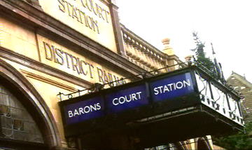 | In the part-documentary/part-reconstruction of the 1974-75 IRA bombing campaign in London, two terrorists are seen exiting "Barons Court," the nearest station to their safehouse. The fast-cutting of these shots failed to disguise the anachronistic service frequency and 2012 Olympic Bid posters!Also seen in the programme was original footage of the station at the time of the events depicted. | ![]() |