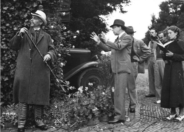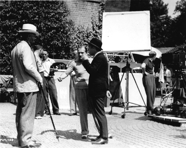 BEHIND THE SCENESWith regulation cigar in hand, Alexander Korda blocks out an exterior scene with Ralph Richardson. Behind Korda, mostly obscured, is actual director Lothar Mendes. Cinematographer Harold Rosson can be seen (with the viewfinder) behind the script assistant on the right.