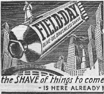 1937 Field-Day Shaving Cream AdvertThis rather fun newspaper advert for Field-Day shaving cream, dating from around August 1937, even feaures the Space Gun. [Original in the author's collection]