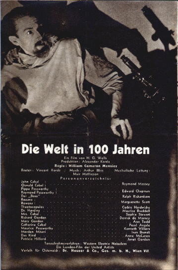 1936 (?) Austrian Promotional BookletLarge 151mm x 231mm eight-page booklet used to advertise the film, presumably for the 1936 release in Austria. The title Die Welt in 100 Jahren translates as "The World in 100 Years." [Original in the author's collection]