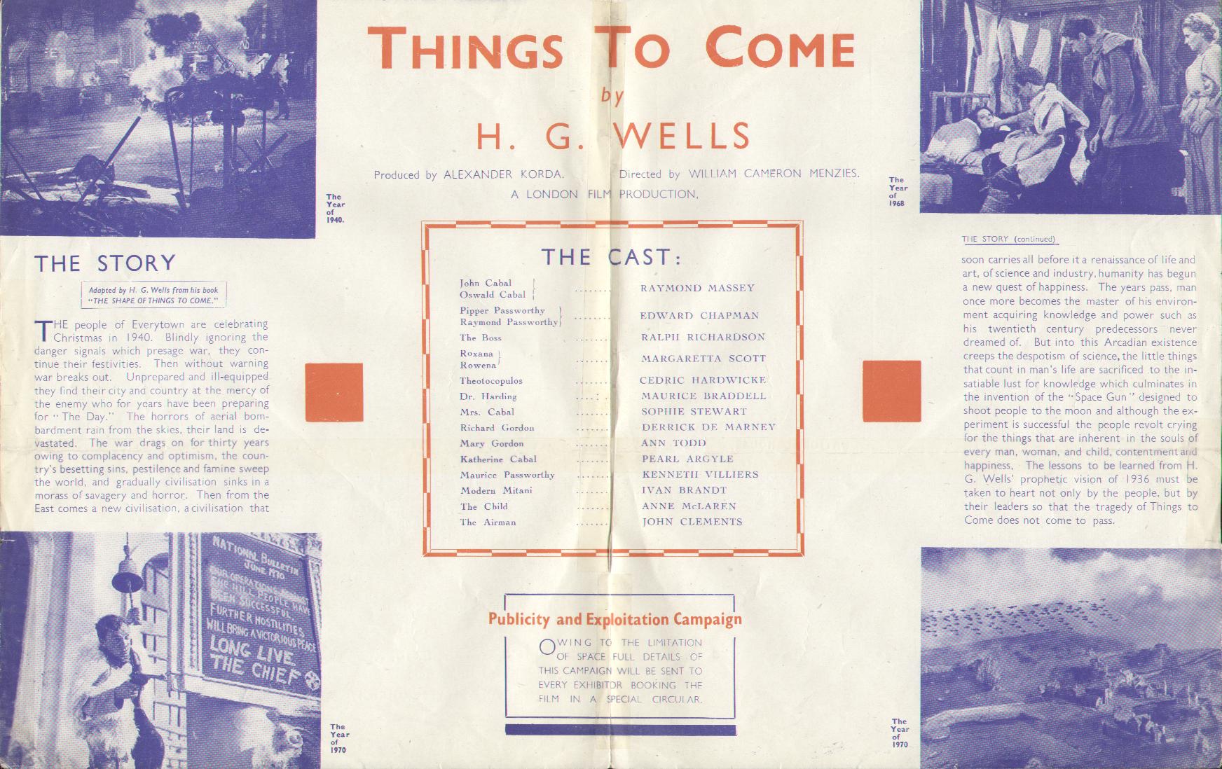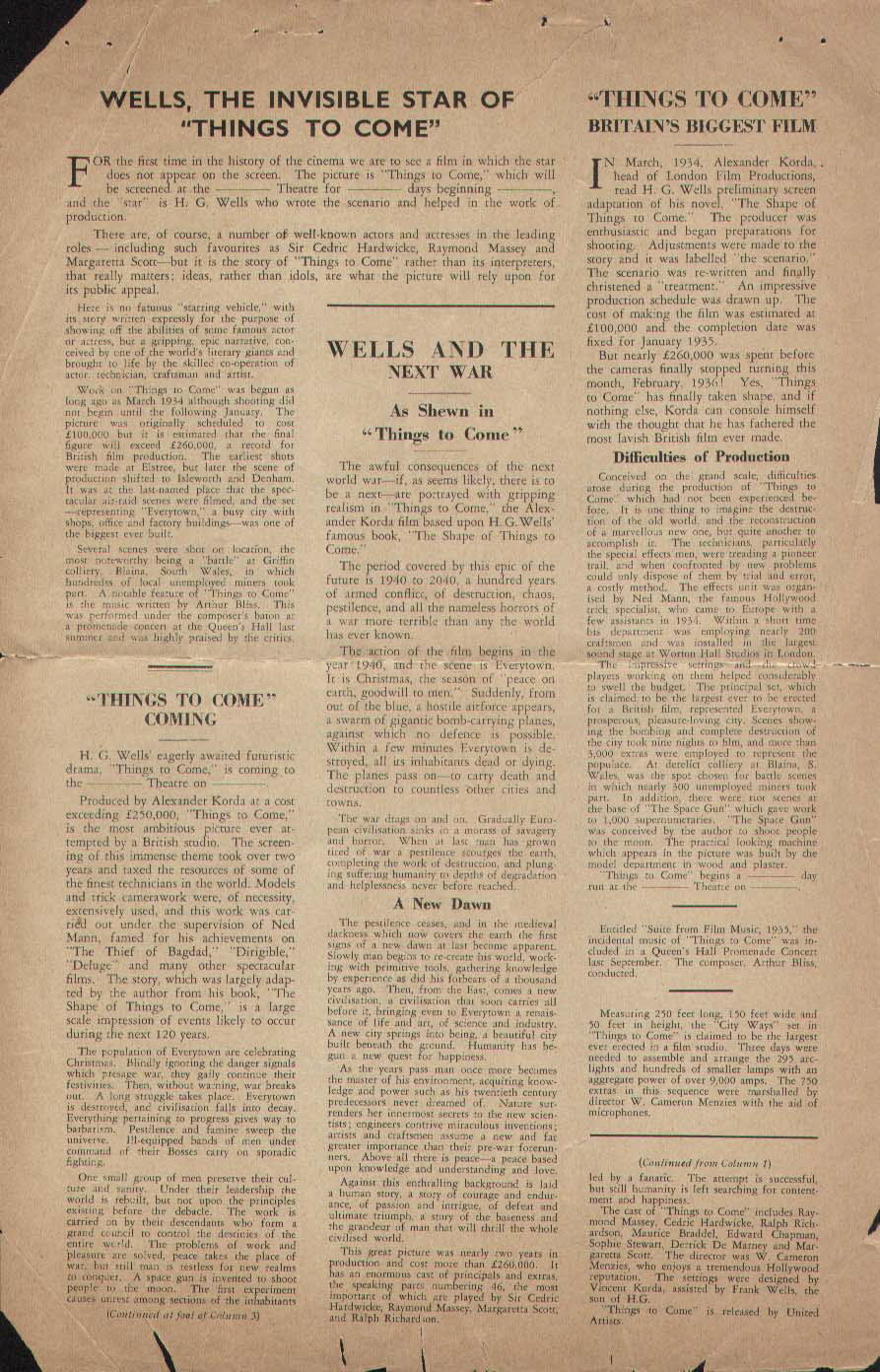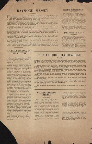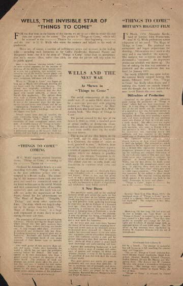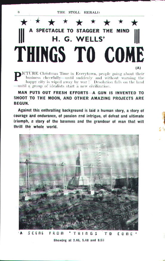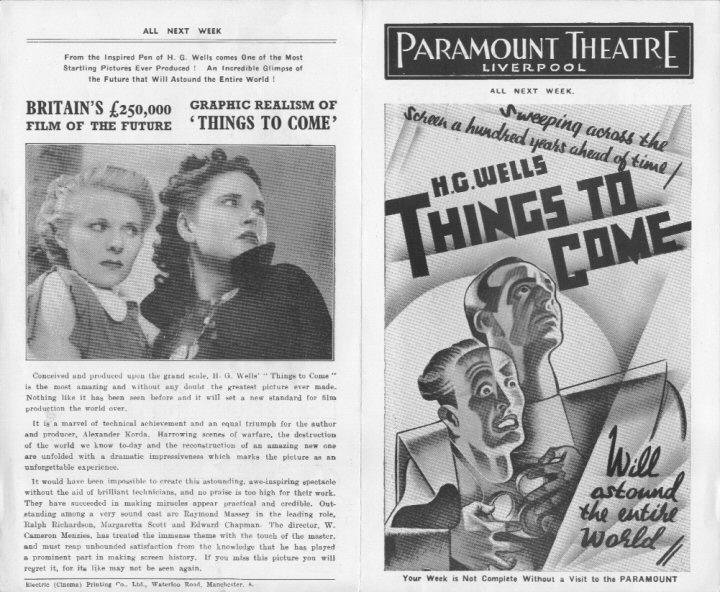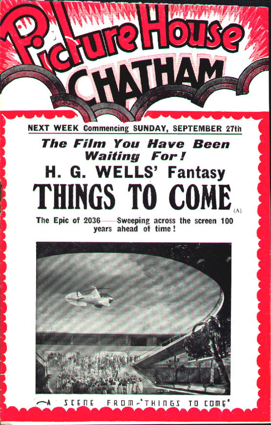 September 1936 Picture House Chatham Stoll HeraldRoughly-trimmed promotional booklet for a Kent cinema, with screenings of Things to Come - from 27 September 1936 - publicised on the cover, the centre-spread (pages 4-6), and page 6. [Original in the author's collection]
