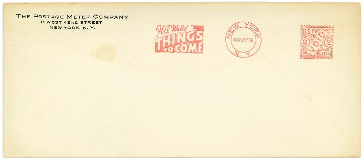 21 March 1936 American Postage Meter SampleExceptionally rare sample of a promotional franking for the film from the Postage Meter Company of New York City. This is almost certainly unofficial, but would have appealed to US cinema operators as a promotional device. [Original in the author's collection]