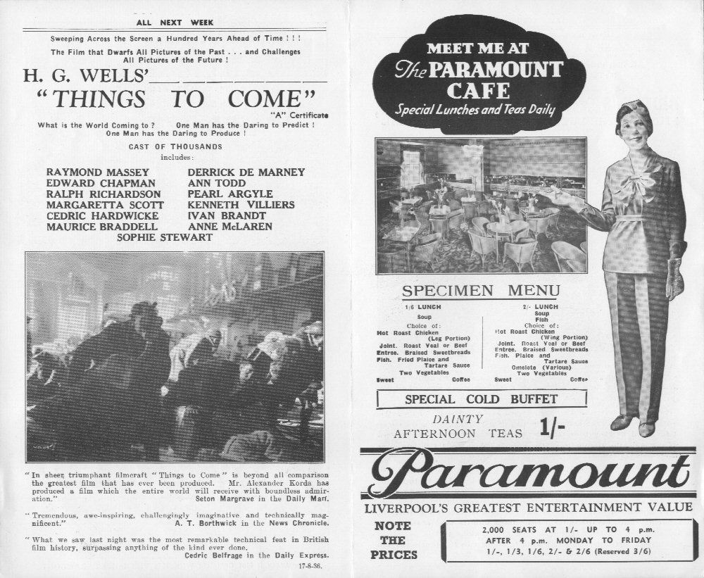 August 1936 Paramount Theatre, Liverpool HeraldSingle 10" x 8.2" sheet folded into a herald advertising screenings of the film at the Paramount Theatre, Liverpool. [Original in the author's collection]
