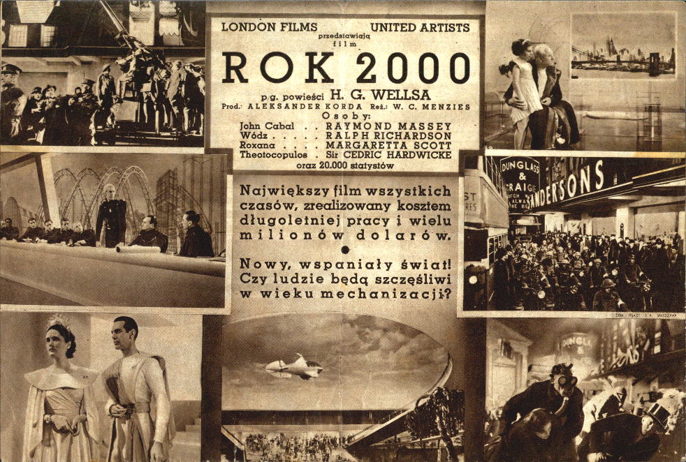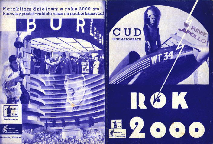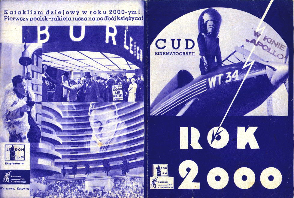 1936 (?) Polish HeraldSmall 249mm x 166mm - folded to 124mm x 166mm - hand-bill or "herald" used to advertise the film, presumably for the 1936 release in Poland. The title Rok 2000 translates as "Year 2000." [Original in the author's collection]