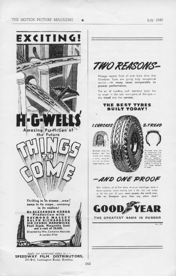 July 1945 Speedway Films Distributors Trade AdvertHalf-page advert from the magazine The Motion Picture Magazine of July 1945 for Speedway Films Distributors, based in Bombay, India. [Original in the author's collection]