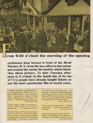 25 April 1936 Motion Picture Herald MagazineTwo-page trade advert for the film, highlighting brisk business at the Rivoli Theater, New York (another view of the crowds can be seen in the Stills Gallery). [Original in the author's collection (formerly FJA collection)]